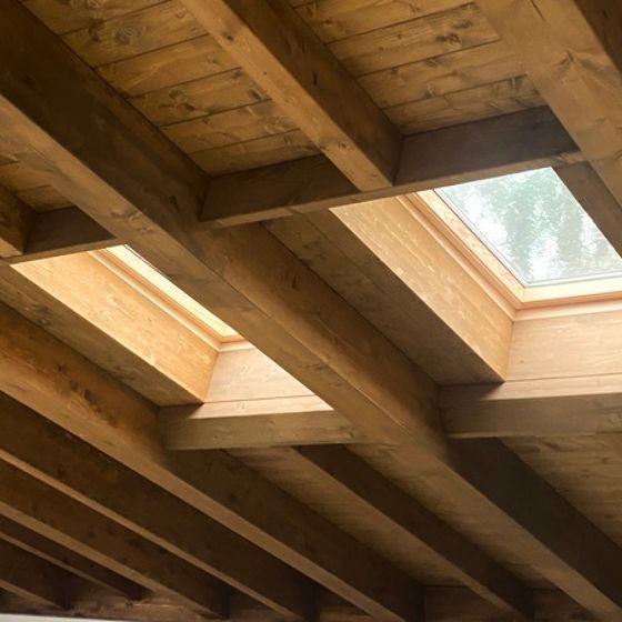 Tetto in legno con abbaini e lucernari